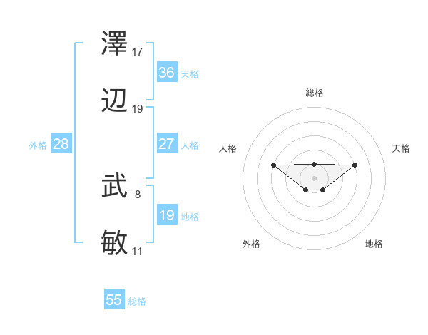 澤辺 武敏さんの総格は55画の1点!