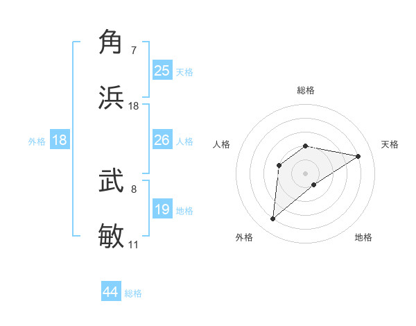 角浜 武敏さんを姓名の画数から五運を鑑定