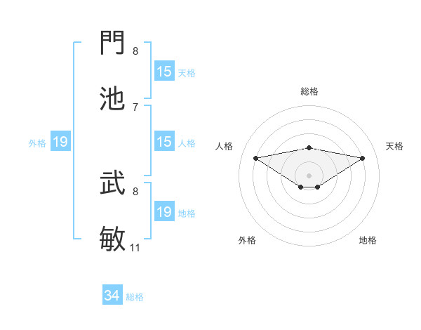 門池 武敏さんの総格は34画の2点!