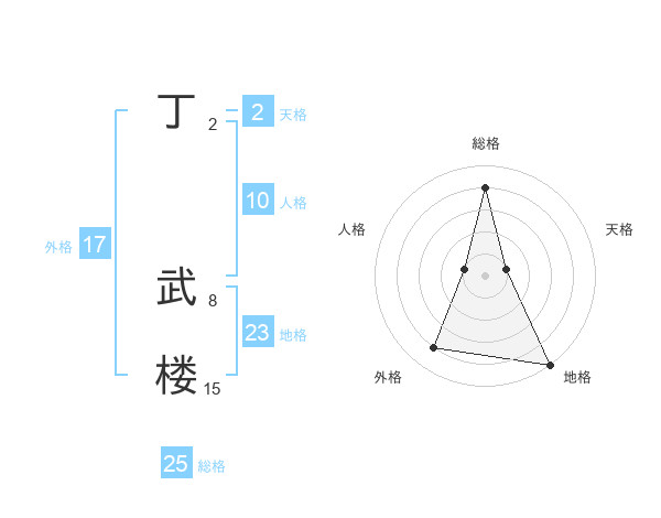 丁 武楼さんの総格は25画の4点!