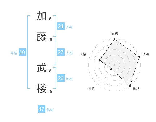 加藤 武楼さんを姓名の画数から五運を鑑定