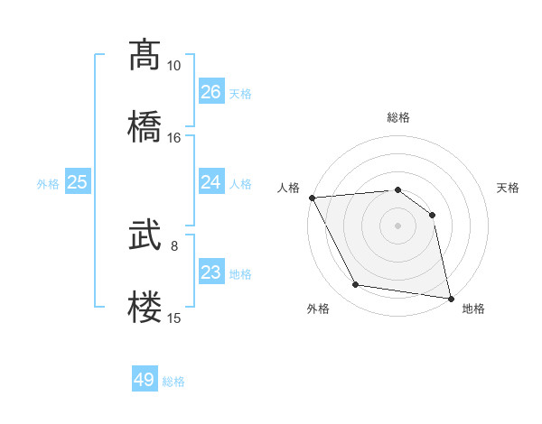 髙橋 武楼さんを姓名の画数から五運を鑑定