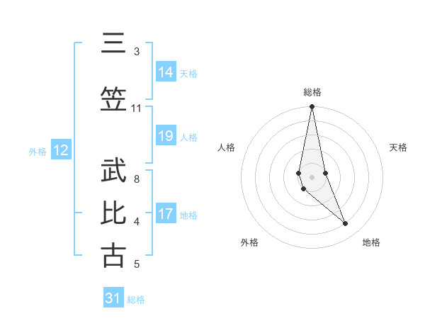 三笠 武比古さんを姓名の画数から五運を鑑定