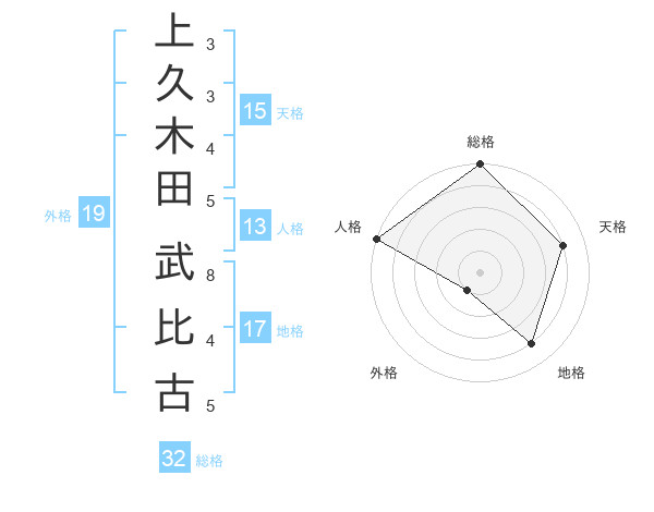 上久木田 武比古さんの総格は32画の5点!