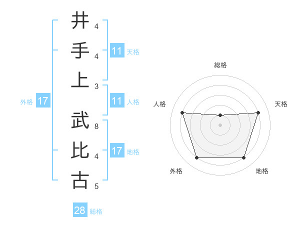井手上 武比古さんを姓名の画数から五運を鑑定