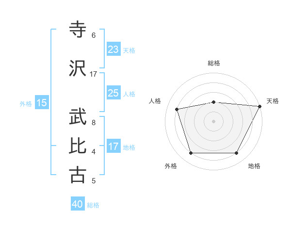 寺沢 武比古さんの天格は23画の5点!