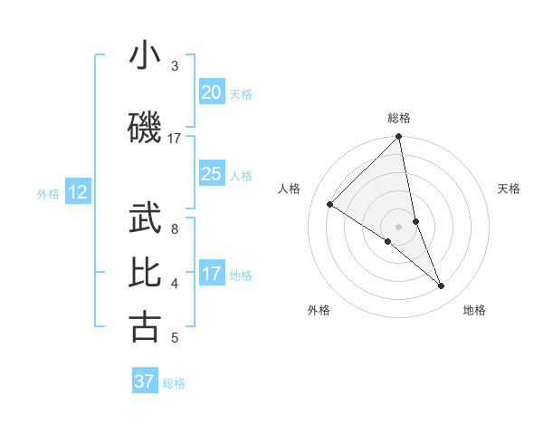 小磯 武比古さんの総格は37画の5点!