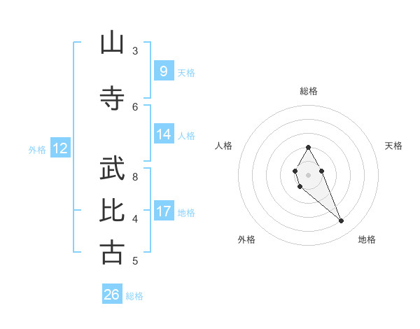 山寺 武比古さんの総格は26画の2点!