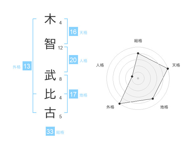 木智 武比古さんの総格は33画の4点!