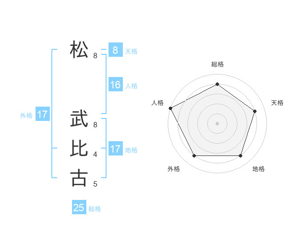 松 武比古さんの総格は25画の4点!