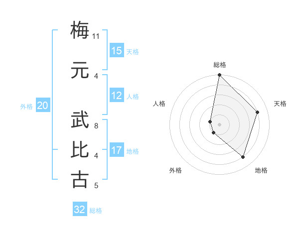 梅元 武比古さんの天格は15画の4点!