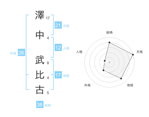 澤中 武比古さんの天格は21画の5点!