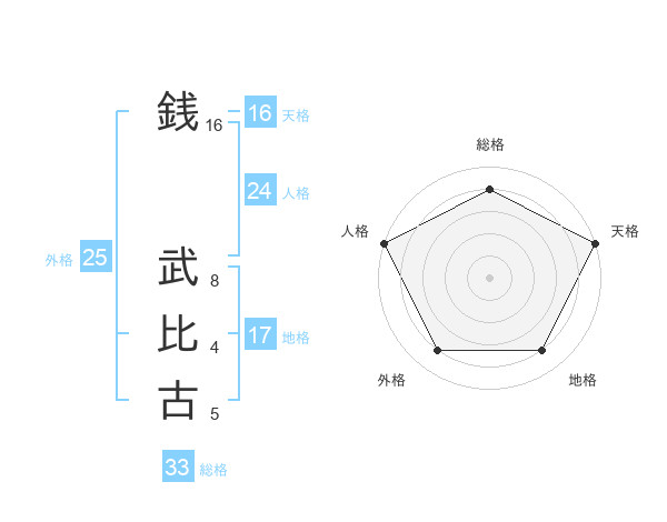 銭 武比古さんの総格は33画の4点!