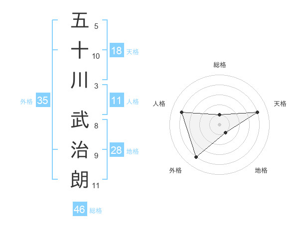 五十川 武治朗さんを姓名の画数から五運を鑑定