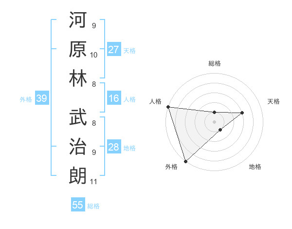 河原林 武治朗さんを姓名の画数から五運を鑑定
