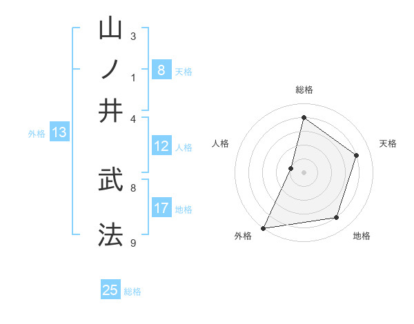 山ノ井 武法さんを姓名の画数から五運を鑑定