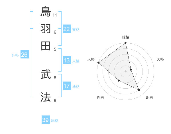 鳥羽田 武法さんを姓名の画数から五運を鑑定