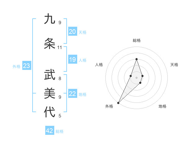 九条 武美代さんの外格は23画の5点!