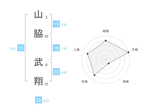 山脇 武翔さんを姓名の画数から五運を鑑定