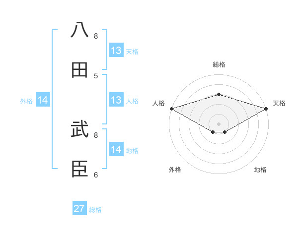 八田 武臣さんの天格は13画の5点!