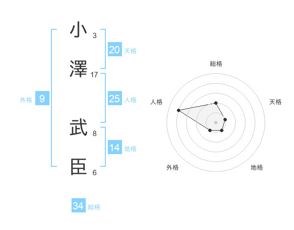 小澤 武臣さんを姓名の画数から五運を鑑定