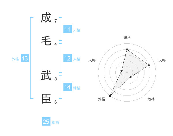 成毛 武臣さんを姓名の画数から五運を鑑定