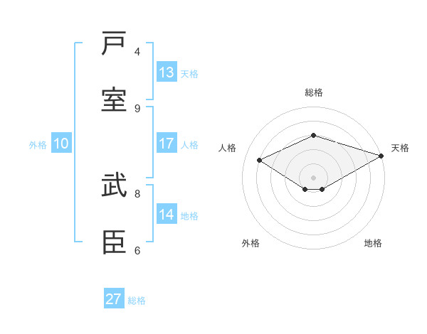 戸室 武臣さんを姓名の画数から五運を鑑定