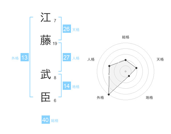 江藤 武臣さんを姓名の画数から五運を鑑定