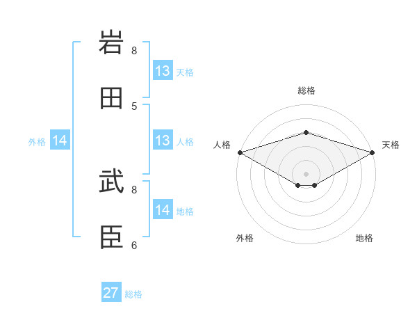 岩田 武臣さんを姓名の画数から五運を鑑定
