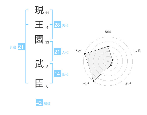 現王園 武臣さんを姓名の画数から五運を鑑定
