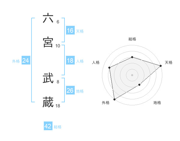 六宮 武蔵さんの天格は16画の5点!