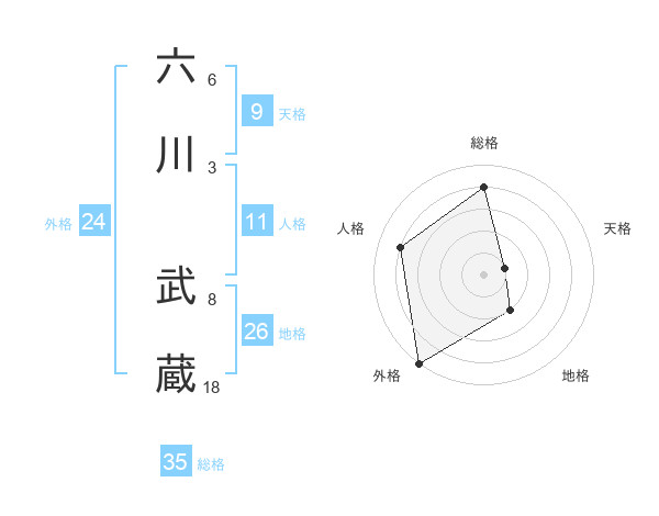 六川 武蔵さんを姓名の画数から五運を鑑定