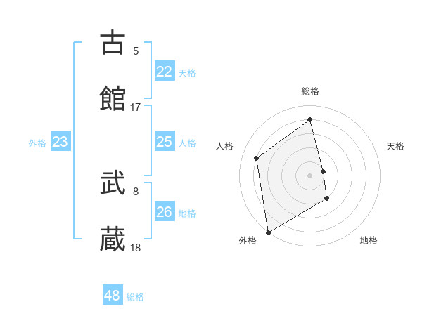 古館 武蔵さんを姓名の画数から五運を鑑定