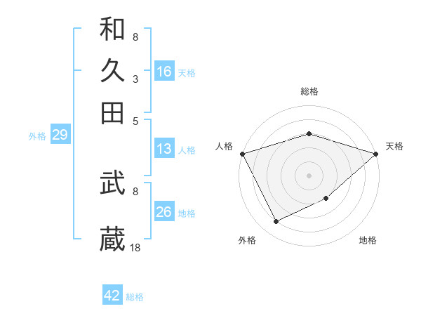 和久田 武蔵さんを姓名の画数から五運を鑑定