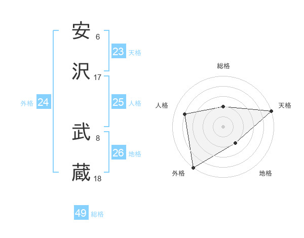 安沢 武蔵さんの外格は24画の5点!