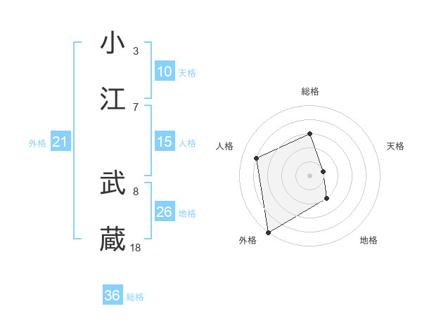 小江 武蔵さんの外格は21画の5点!