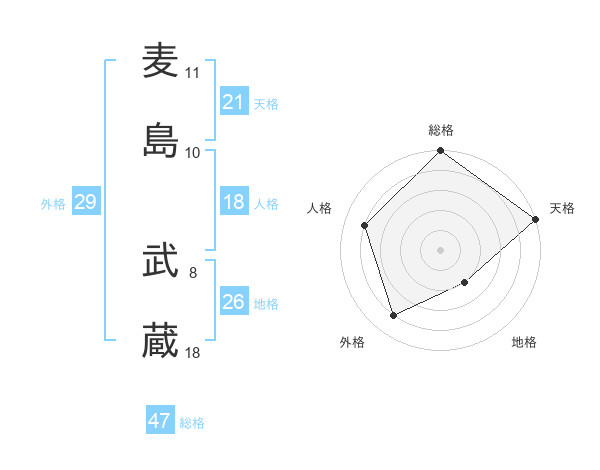 麦島 武蔵さんを姓名の画数から五運を鑑定