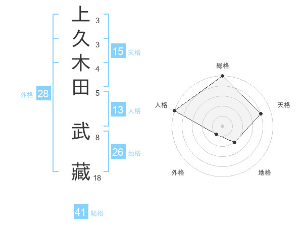 上久木田 武藏さんを姓名の画数から五運を鑑定