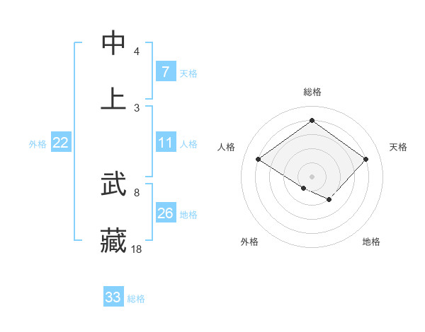 中上 武藏さんの地格は26画の2点!