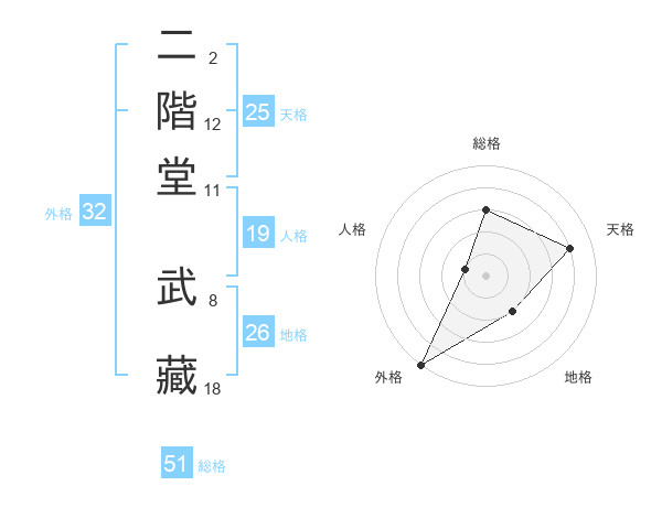 二階堂 武藏さんを姓名の画数から五運を鑑定
