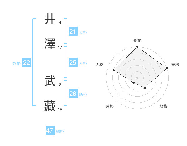 井澤 武藏さんを姓名の画数から五運を鑑定
