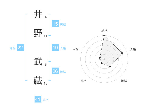 井野 武藏さんの天格は15画の4点!