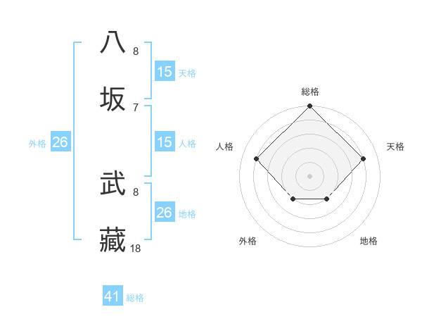 八坂 武藏さんの総格は41画の5点!