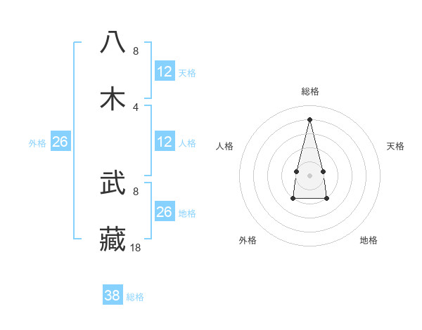 八木 武藏さんの総格は38画の4点