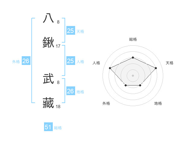 八鍬 武藏さんの総格は51画の3点!