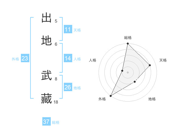 出地 武藏さんの総格は37画の5点!