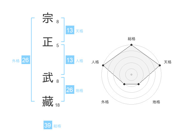 宗正 武藏さんの天格は13画の5点!