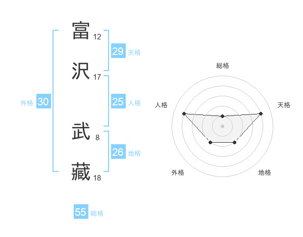 富沢 武藏さんの総格は55画の1点!