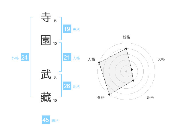 寺園 武藏さんを姓名の画数から五運を鑑定