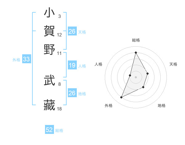 小賀野 武藏さんを姓名の画数から五運を鑑定